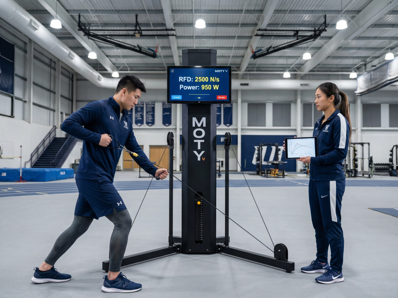 為了讓學校體育班與運科中心能夠精準監測並提升運動員的 RFD,AirX 引進了 Moty V 智慧阻力訓練系統。這款設備徹底顛覆了傳統重量訓練的限制,將實驗室等級的測力技術帶入了日常的訓練場館。