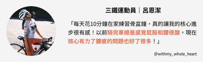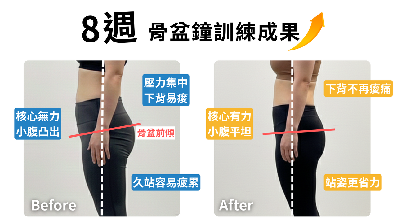 下背痠痛明顯改善,連我一直很在意的小腹也自然平坦許多。