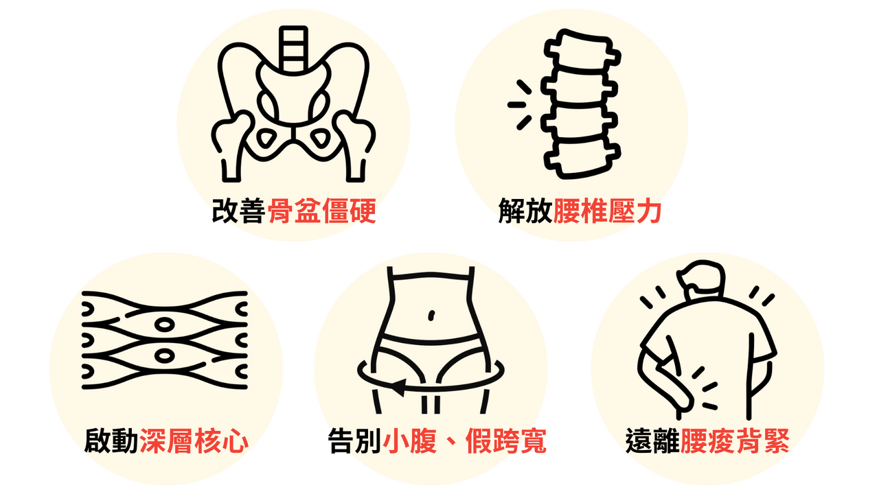 幫助 恢復骨盆活動度、分散腰椎壓力,